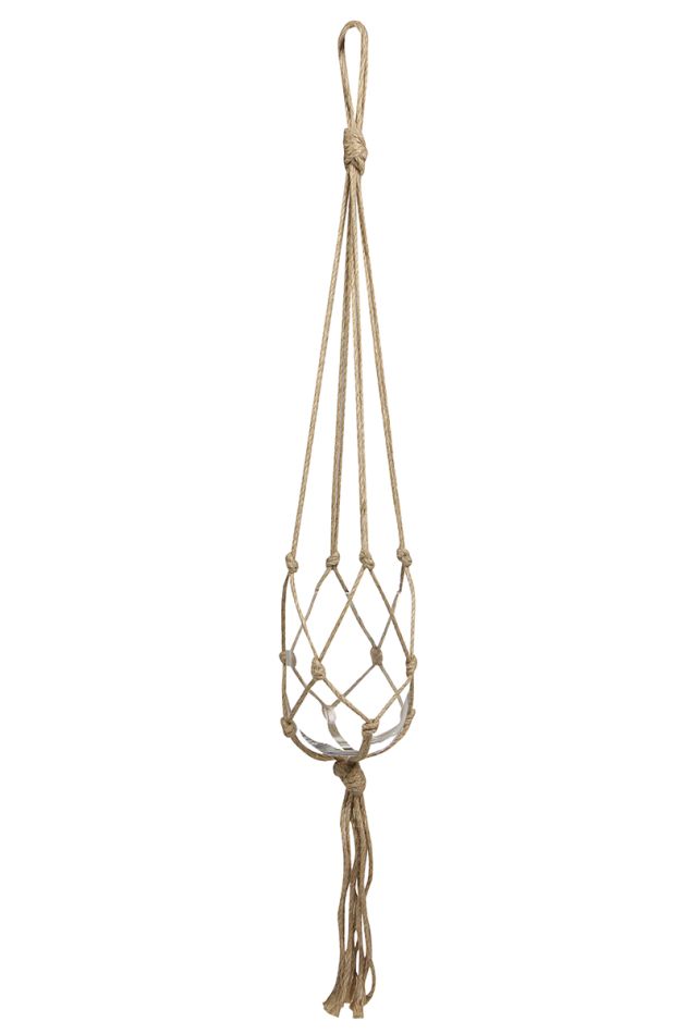 Hang je plant op een unieke manier op met deze Macrame plantenhanger. De hanger is gemaakt van jute en geschikt voor bloempotten met de diameter 12-20 cm. Hij valt op door de botanische afwerking met knopen. Deze plantenhanger is leuk voor op het terras, in de tuin maar ook voor binnen. Door de neutrale kleur is hij overal mee te combineren.